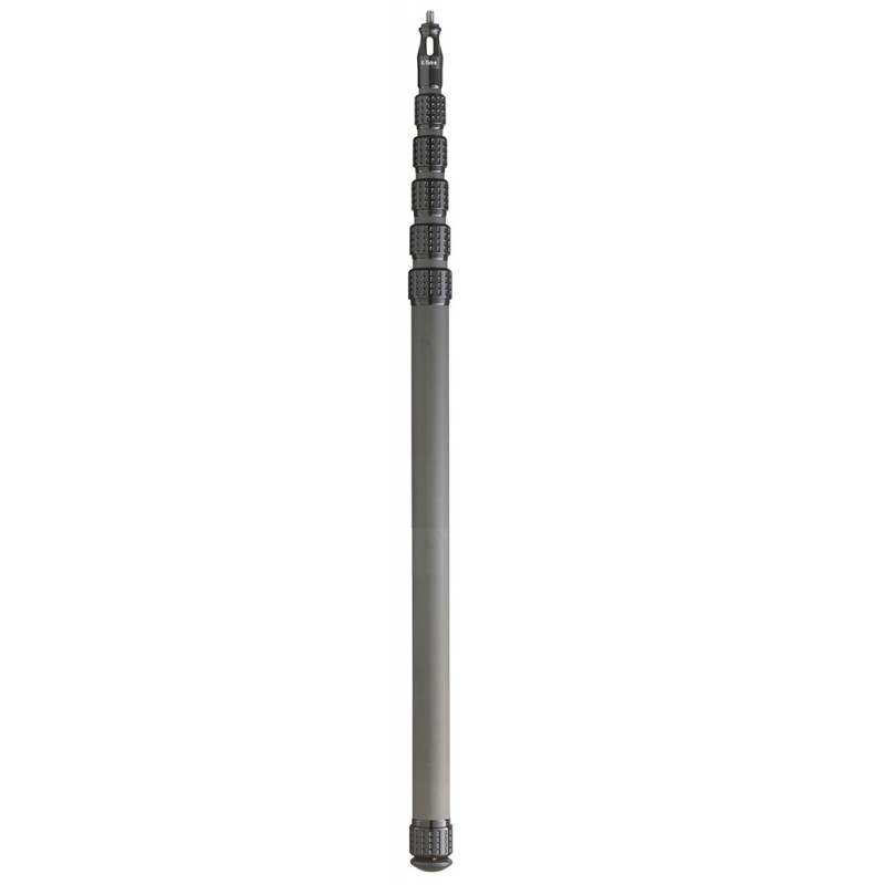 The KP9, KlassicPro boom pole has a collapsed length of 28″ / 71.2 cm and an extended length of 9′ / 2.75 m and only weighs 1.4 lbs / 0.63 kg. This 6-section boom pole features a removable headpiece for cable reconfiguration without soldering. The top attachment is a 3/8″” – 16 male thread and the bottom has a removable rubber bumper. Made in the USA.