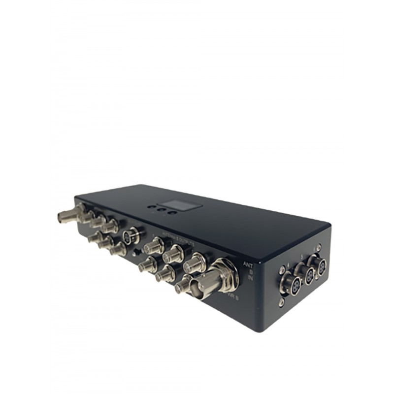 Powering for the multiple receivers can be powered through the DC Hirose output sockets. The dc output ports can be turned ON/OFF from the OLED display menu.